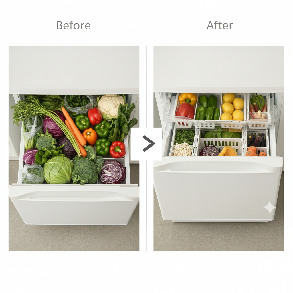 1. 野菜室:「見える化」で使い切る!立てる収納と仕切り活用術