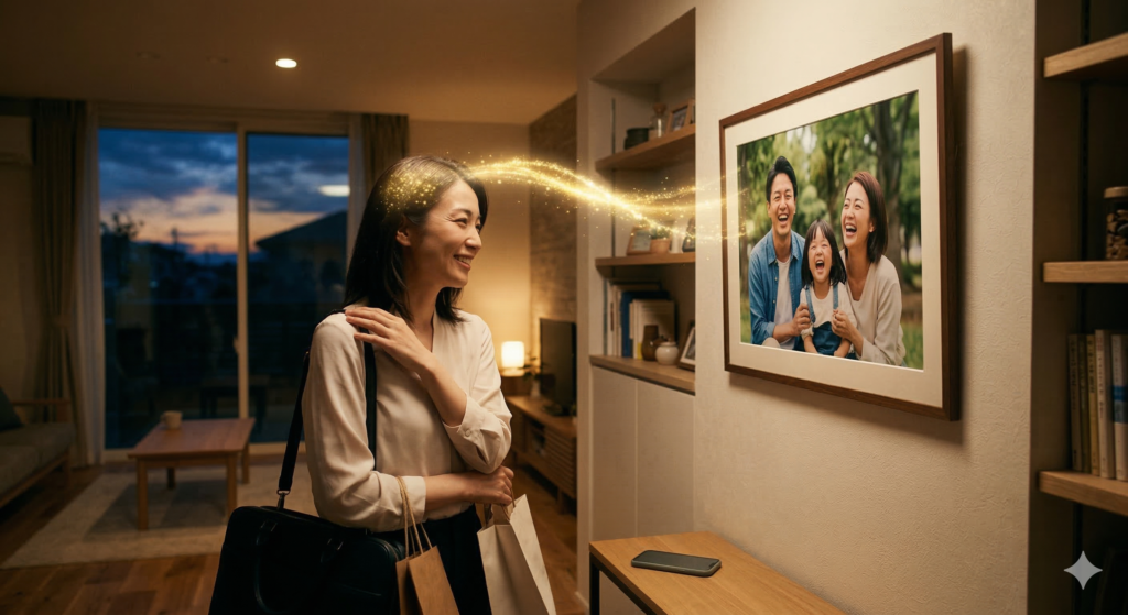 スマホの中に閉じ込められた数百枚、数千枚の幸せな記憶。それを「ただのデータ」のままにしておくのは、実はもったいないこと。お気に入りの1枚を物理的に壁に飾ることで、視界に入るたびに脳は一瞬で「あの時の幸福感」を再体験します。