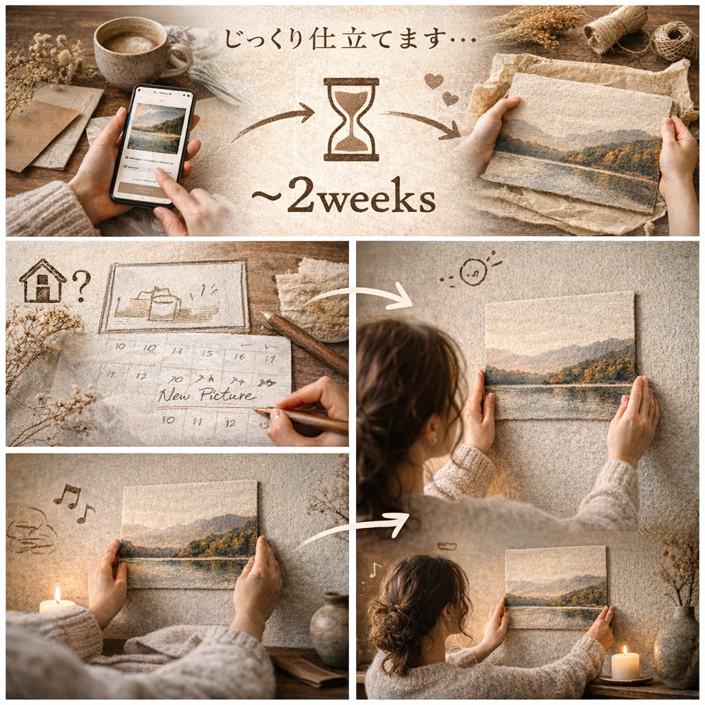 「あの一枚が、どんな風に仕上がって届くかな」 「届いたら、あの壁のあの場所に飾ろう」